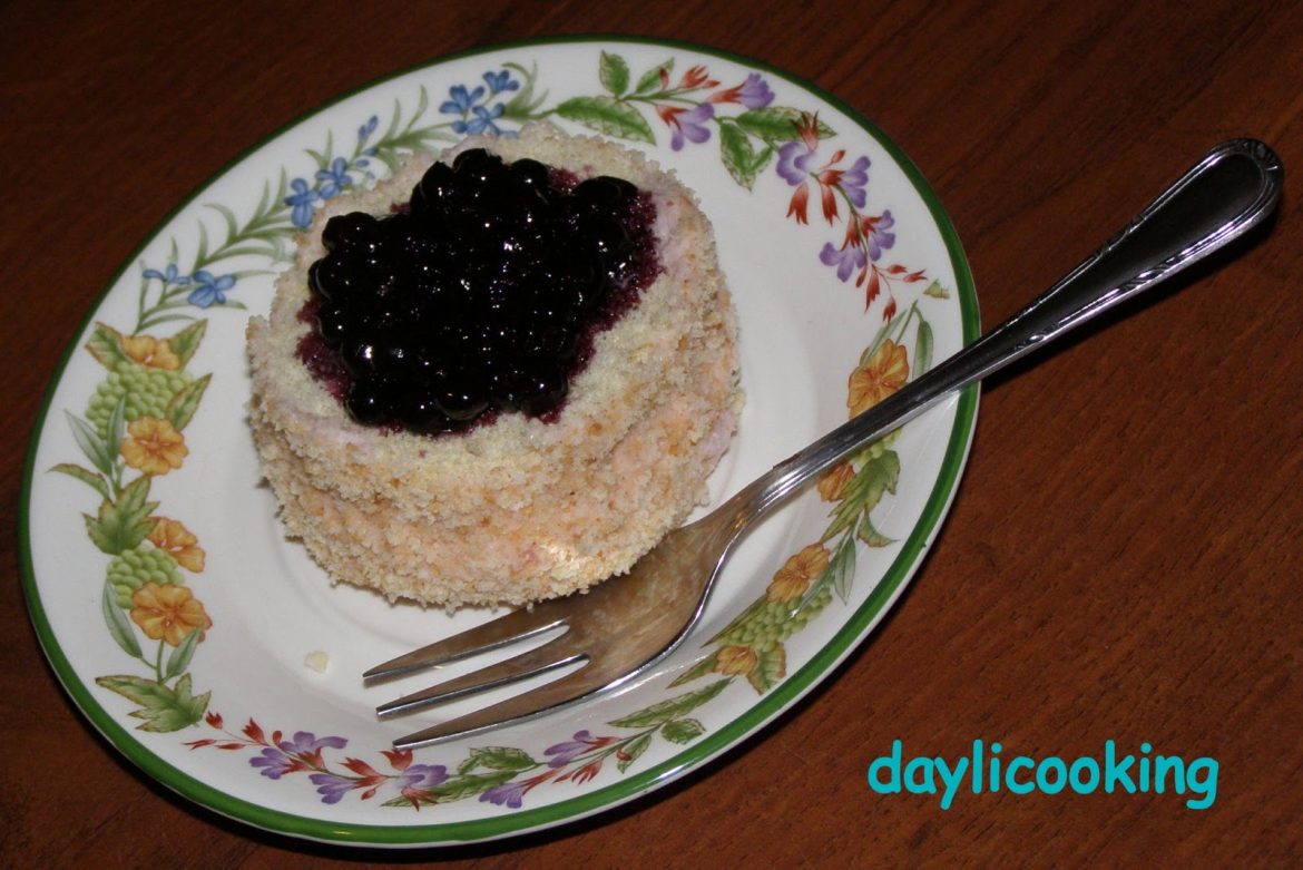 Na górę nakładać owoce – ja użyłam jagód w cukrze. Dostałam kilka słoiczków od mojej ukochanej babci 🙂
