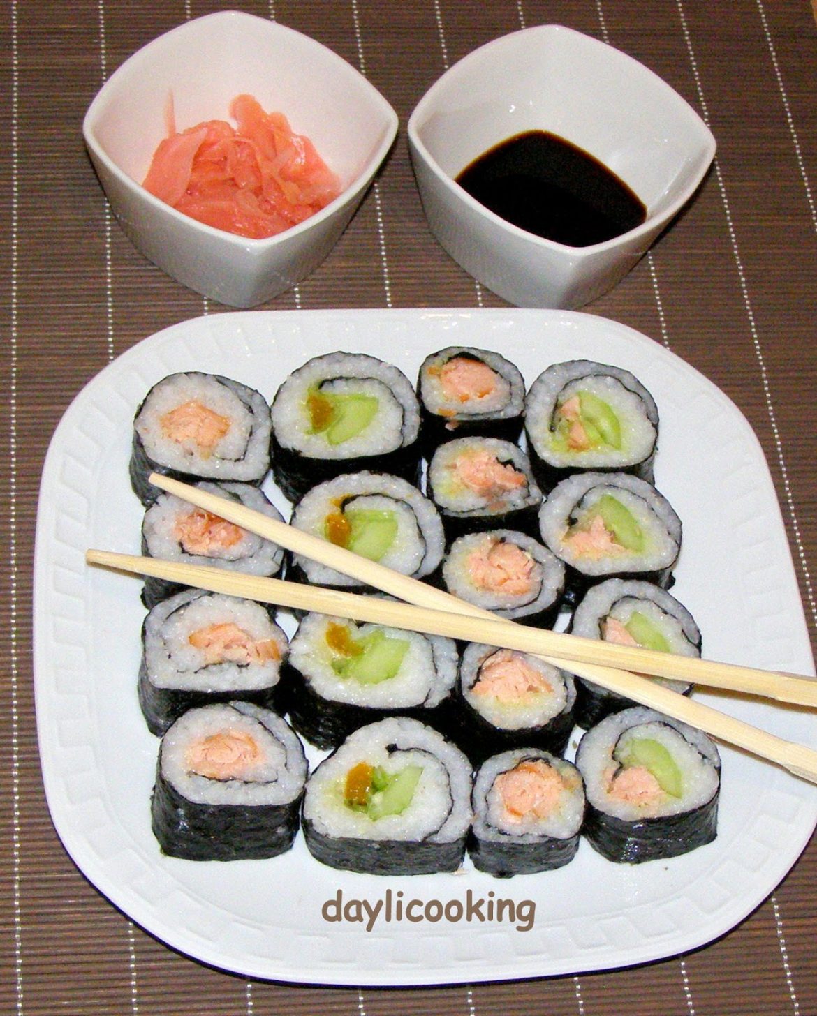 Uwielbiam sushi mogłabym jeść codziennie – i czasami nawet do tego dochodzi. jednak przygotowuję sama nie jestem w stanie się odważyć na wykorzystanie surowej ryby – nie mam żadnego sprawdzonego źródła a w hipermarkecie różnie to bywa. wtedy zastępuję wędzonym łososiem wysokiej jakości bądź paluszkami krabowymi. 🙂
