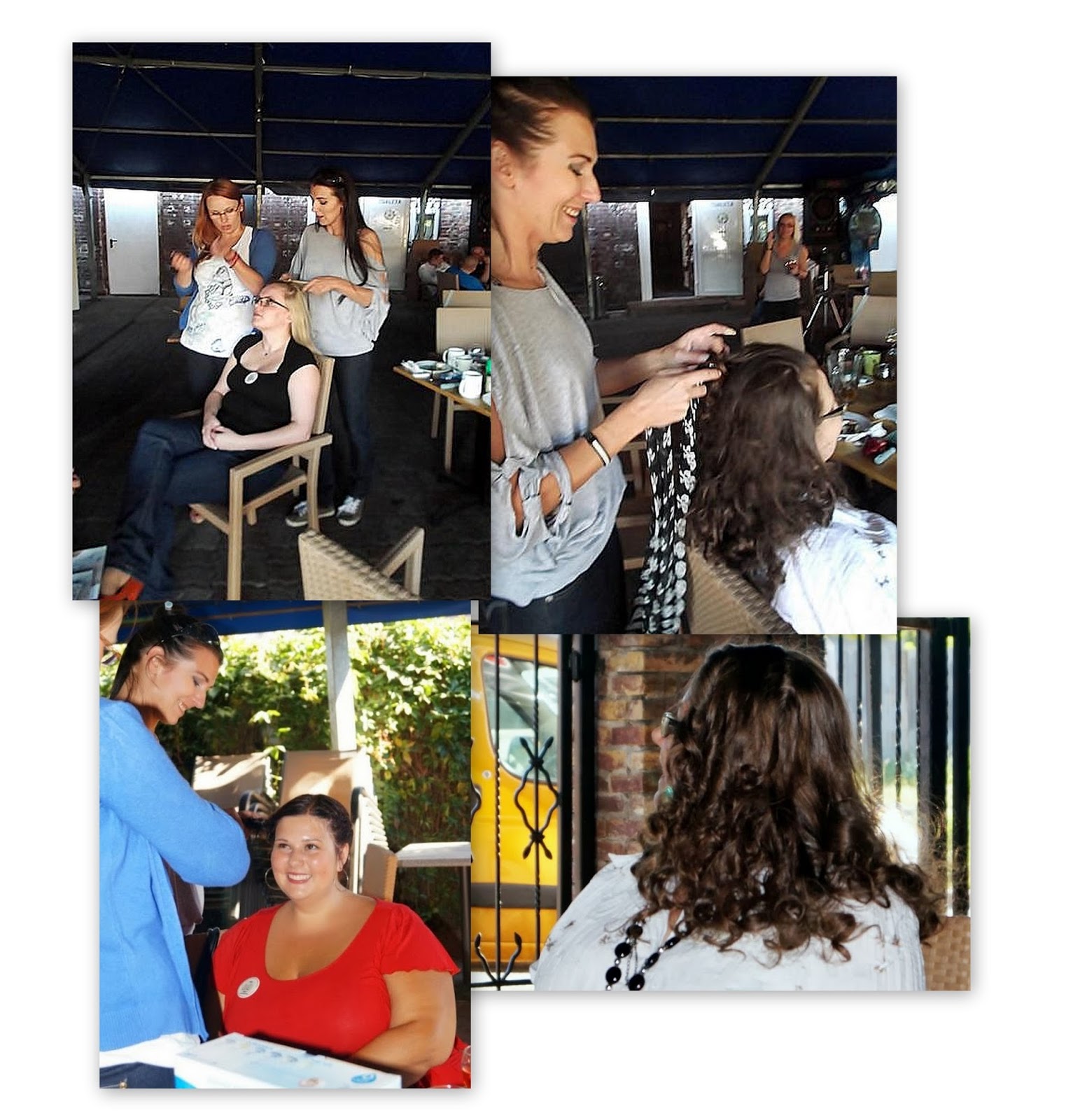 Ci, którzy znają Dominikę alias Naczelną wiedzą, że tam gdzie ona się pojawia, tam w ruch idzie chusta i włosy, czyli następuje zbiorowe kręcenie, czesanie, zaplatanie i inne cuda 🙂 Ja poszłam na pierwszy plan, a po mnie inne dziewczyny. I chyba każda, która miała ciut dłuższe włosy była “zapleciona”.