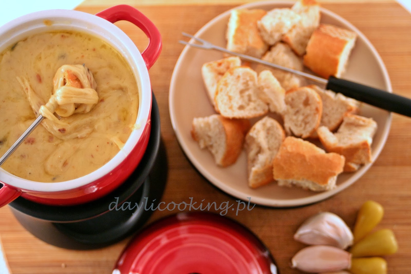 Do zrobienia fondue przymierzałam się dość długo. W końcu zebrałam się w sobie i zrobiłam 😉 Przejrzałam znajome i nieznajome blogi w poszukiwaniu inspiracji i dwa z nich zaciekawiły mnie szczególnie. Pierwszy to blog słodko-słonej, a drugi to blog jednego z moich ulubionych miłośników kuchni, czyli edicook. Popatrzyłam, pomyślałam i ruszyłam do kuchni. Tak właśnie powstało moje pierwsze fondue 🙂 do doskonałości zapewne daleko mu, więc bądźcie wyrozumiali 😉