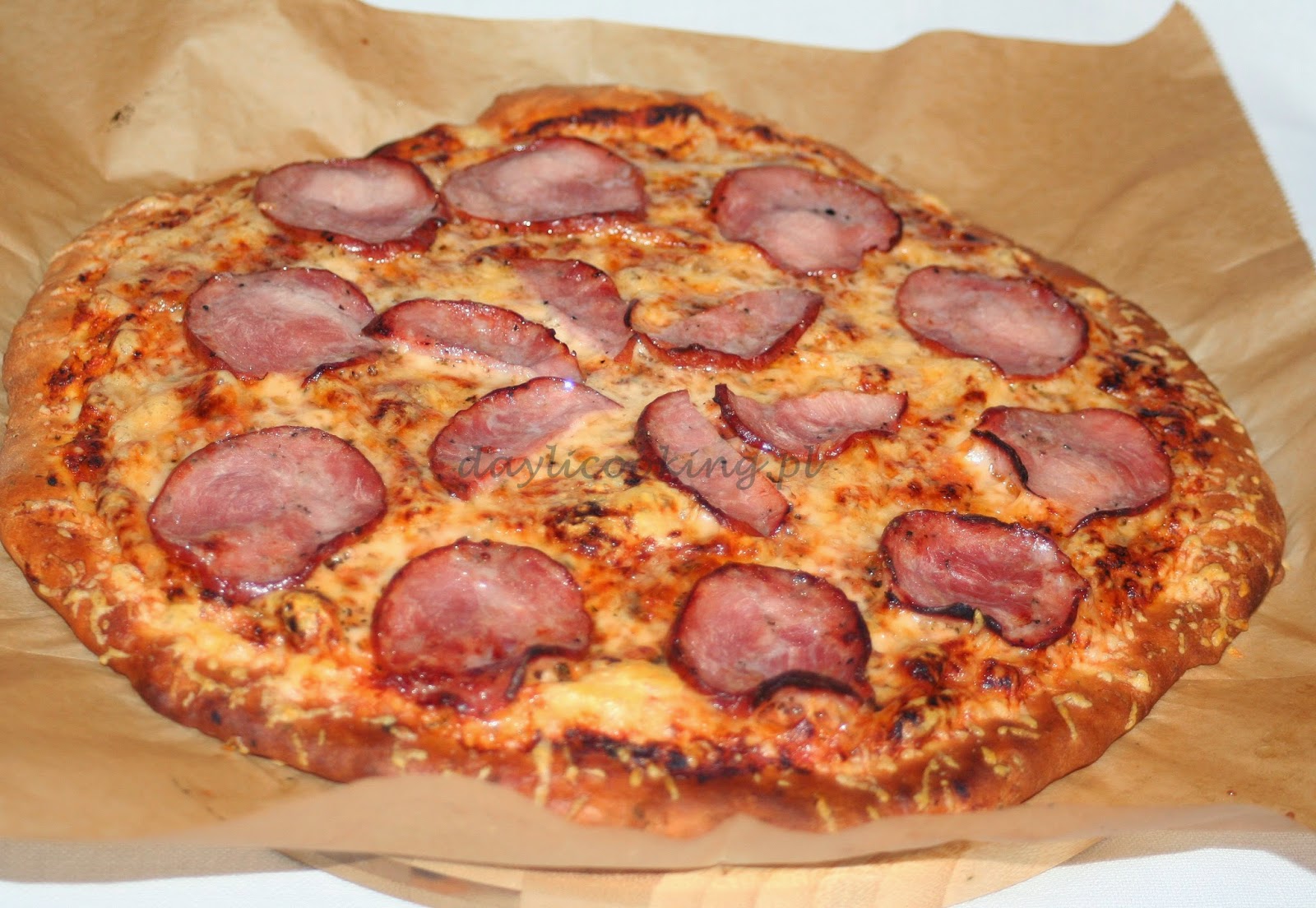 Pizza na cienkim cieście z serem i suchą kiełbasą – jak zrobić