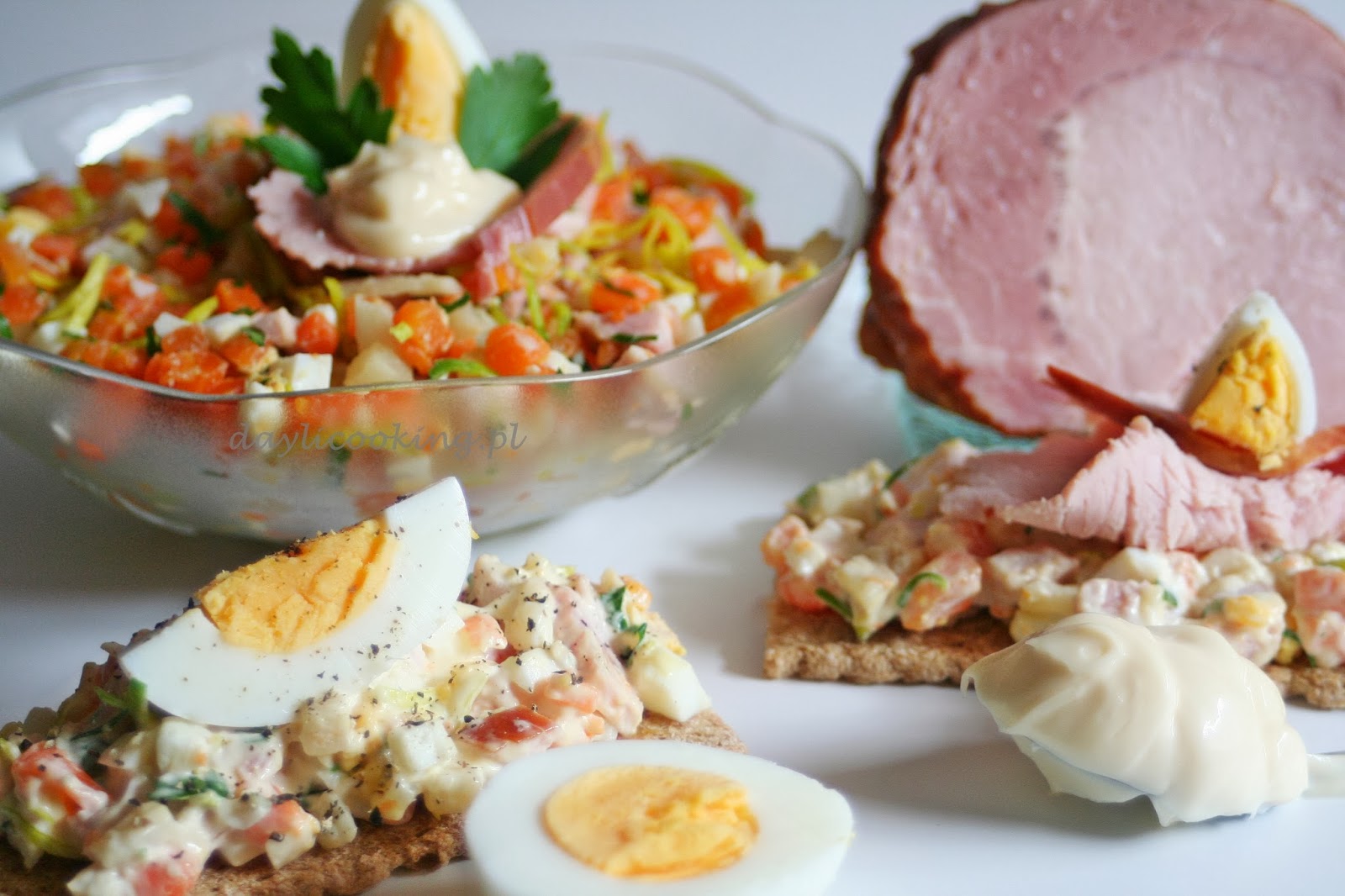 Sałatka jarzynowa z szynką, czyli dzisiaj kolejny raz będę Was namawiać do recyklingu. Bo czym innym nazwać wykorzystanie np. warzyw z rosołu? Wiem, że w wielu domach takie warzywa się wyrzuca. A przecież to smaczny składnik wielu sałatek. Przyprawiać ich też nie trzeba za dużo, bo ugotowane w mięsnym wywarze mają już smak własnie z tego wywaru. Zanim następnym razem wyrzucicie niechciane przez nikogo warzywa – zróbcie z nich sałatkę.