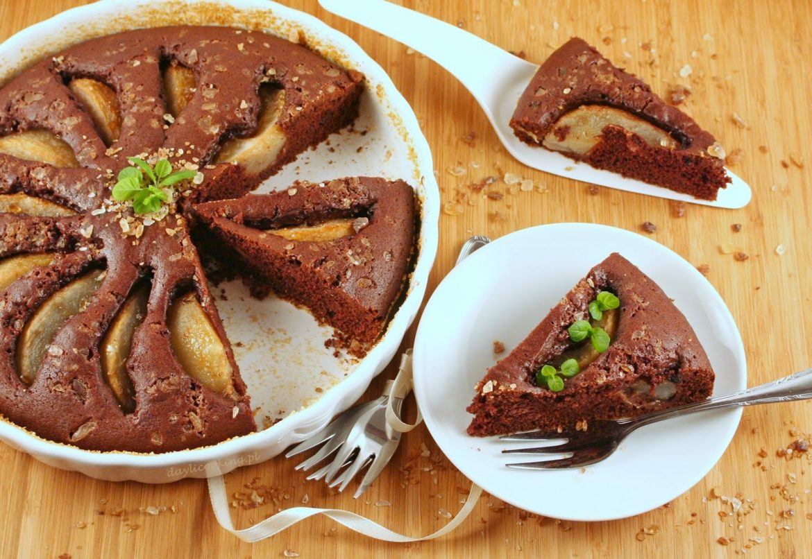 Przepis na szybkie czekoladowe ciasto z gruszkami