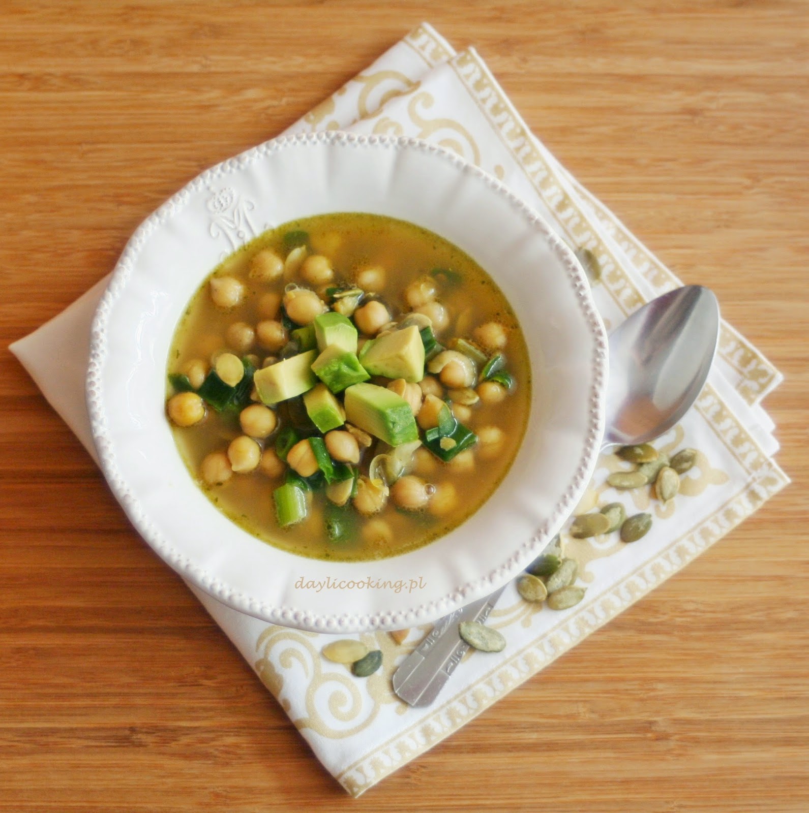 Ciecierzycę poznałam całkiem niedawno, jednak od pierwszego kęsa polubiłyśmy się. Najczęściej przygotowuję ją lekko podsmażaną z dodatkiem ziół lub w formie najróżniejszych zup. Ciecierzyca jest bardzo wdzięcznym produktem i warto przynajmniej spróbować zaprzyjaźnić się z nią. Dzisiejsza zupa powstała w pewnym sensie z nudów. Coś by się zjadło, tylko nie bardzo wiadomo było co konkretnie. Po krótkim przeglądzie lodówki i szafek powstał pomysł na połączenie ciecierzycy i awokado. Sama zdziwiłam się, jak pysznie to smakowało! Chcecie spróbować??