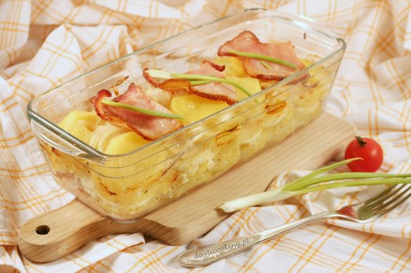 Przepis na błyskawiczna zapiekankę ziemniaczaną z szybką, cebulą i jajkami