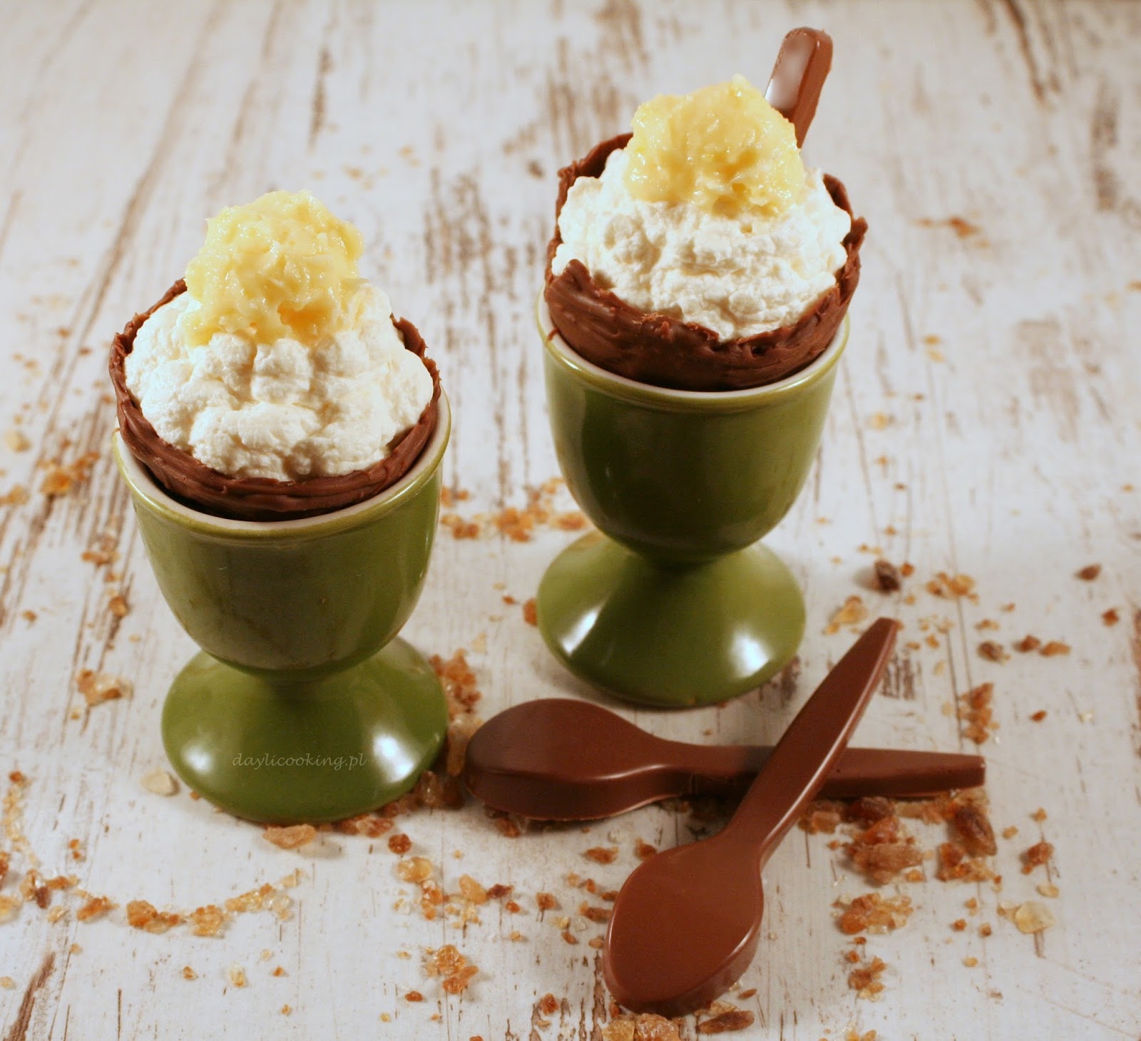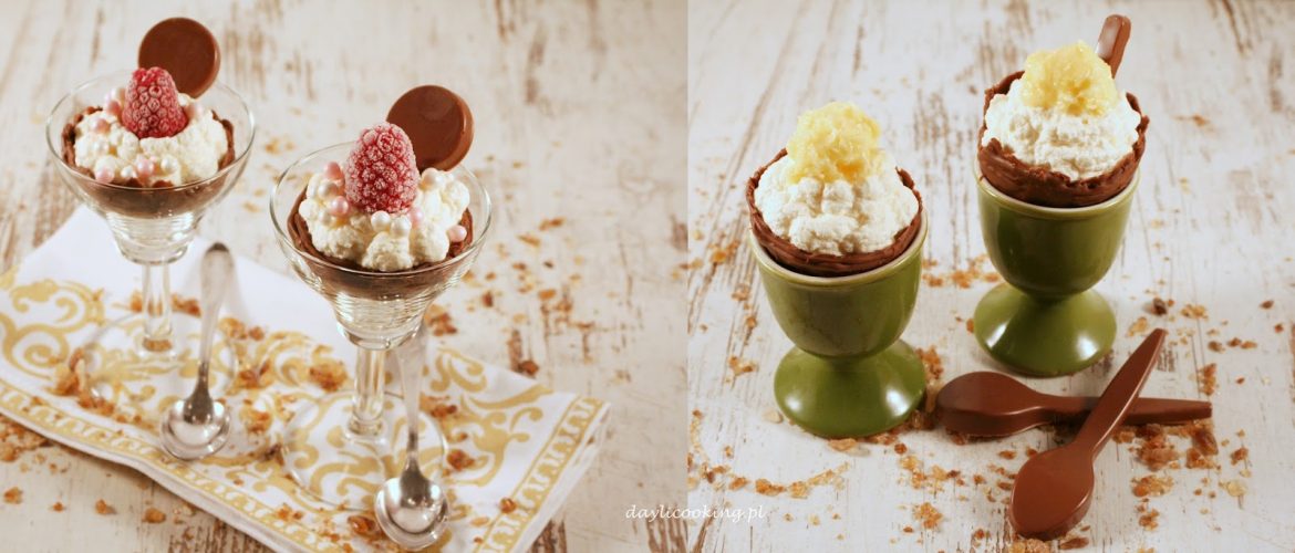 Święta to okazja, żeby podać na stół ciekawe i efektowne desery. Takie własnie są, moim zdaniem, czekoladowe jajka wypełnione bitą śmietaną. Ich przygotowanie nie jest trudne, ani zbytnio czasochłonne. Czekoladowe foremki można przygotować kilka dni wcześniej i przechować w lodówce. Samo ubicie śmietany i wypełnienie nią jajeczek nie zajmie nam dużo czasu.