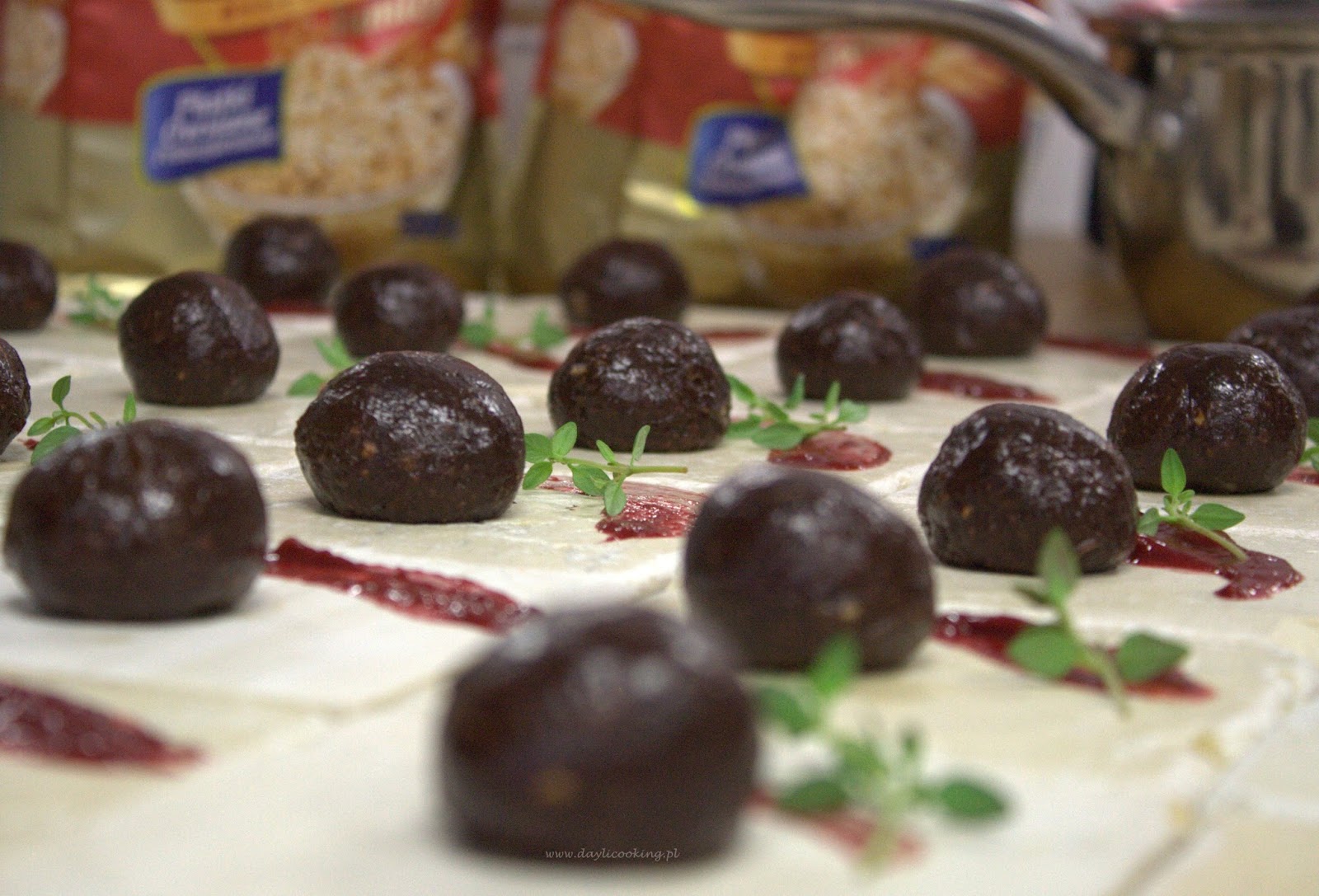 - Czekoladowe trufle owsiane ze szczyptą chili i musem malinowym