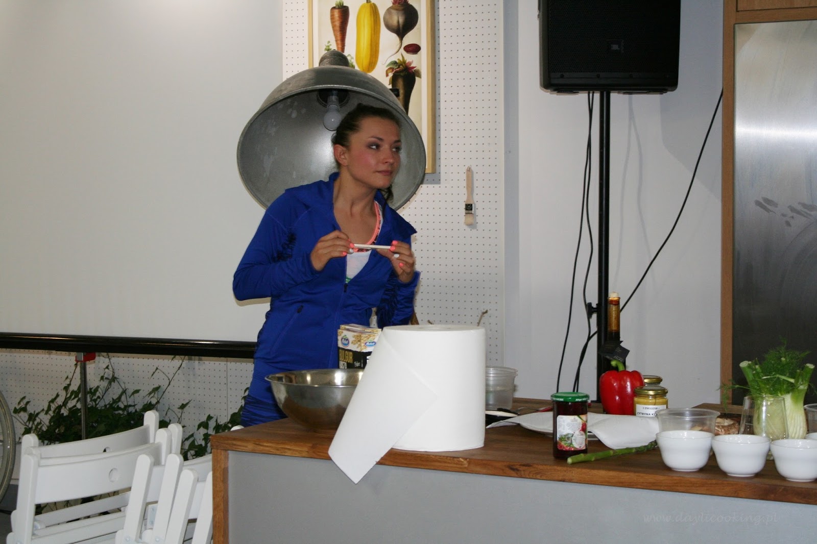 Uzbrojeni w zielonego szparaga (imitującego mikrofon) przedstawialiśmy się i mieliśmy możliwość zadawania pytań. Wypadło to bardzo wesoło i ciekawie. Ja, wielbicielka miodów, dowiedziałam się, że nie powinno się go poddawać obróbce cieplnej. W jego miejsce lepiej użyć syropu klonowego, którego dobrym właściwościom nie zaszkodzi to.