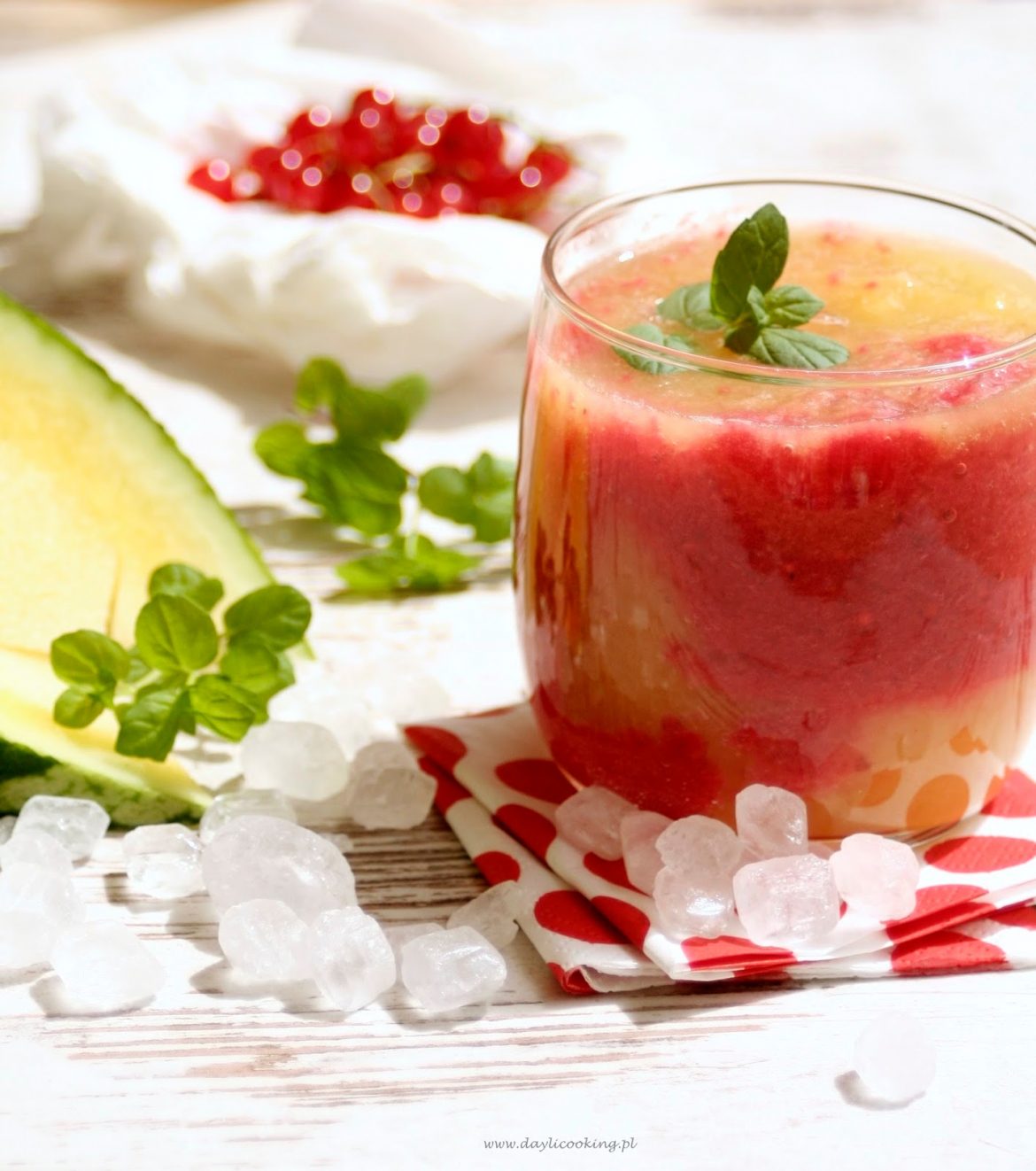 Pogoda nie szczędzi nam wysokich temperatur, co – jak wiadomo – skutkuje zwiększonym pragnieniem. O tym, że podczas upałów trzeba pić odpowiednio dużo wody, pisałam niedawno. Trzeba o tym pamiętać, bo z przegrzaniem i odwodnieniem nie ma żartów. Samą wodą jednak człowiek żyć nie może. Trzeba dostarczyć jeszcze minerały i witaminy. Najprościej zrobić to wykorzystując owoce i warzywa do przygotowywania koktajli i innych napojów. Tutaj ograniczyć nas może tylko wyobraźnia ? Ja tym razem postawiłam na żółtego arbuza, czerwoną porzeczkę i miętę. Wyszło pysznie i zdrowo przy niewielkim nakładzie pracy – czyli to, co lubię ?