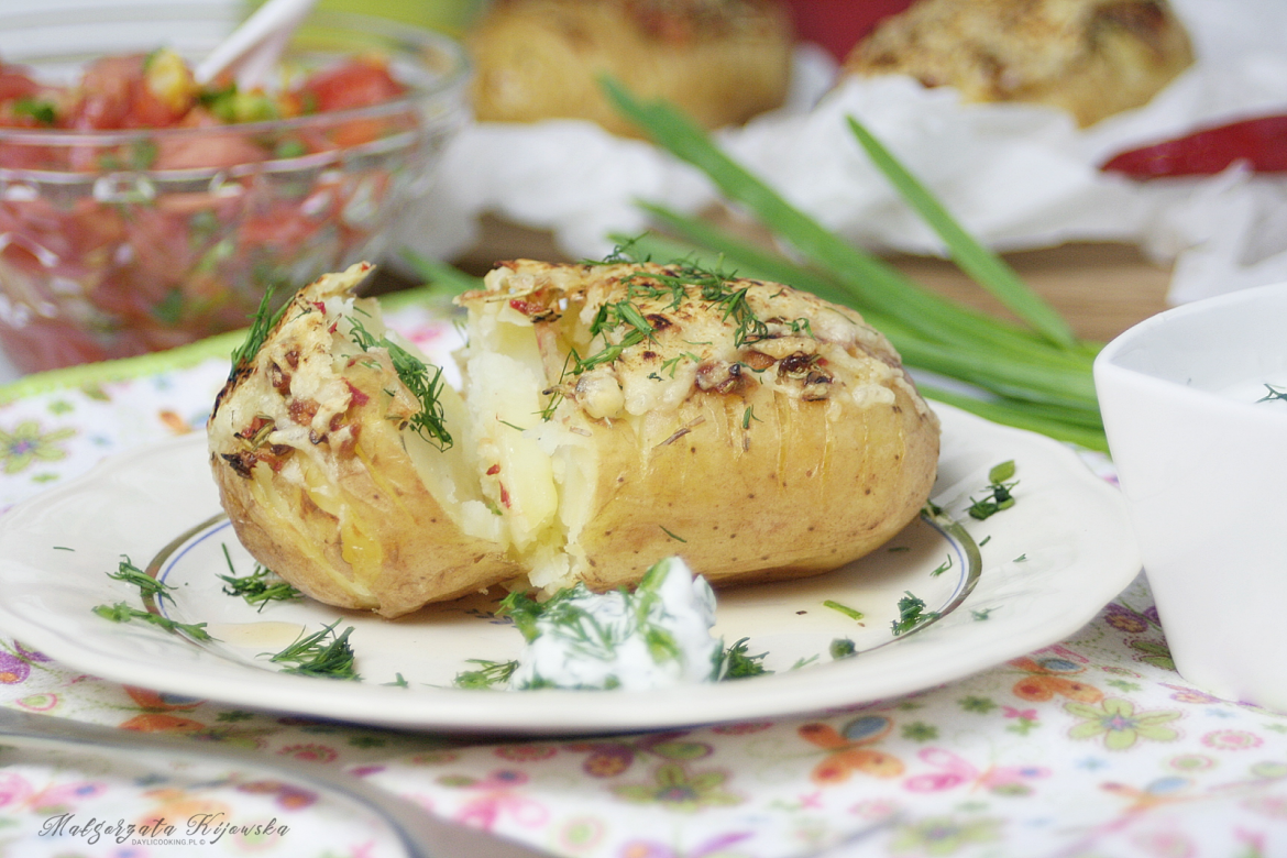 Takie ziemniaki najbardziej smakują z ziołowymi sosami na bazie twarożku lub naturalnego jogurtu.