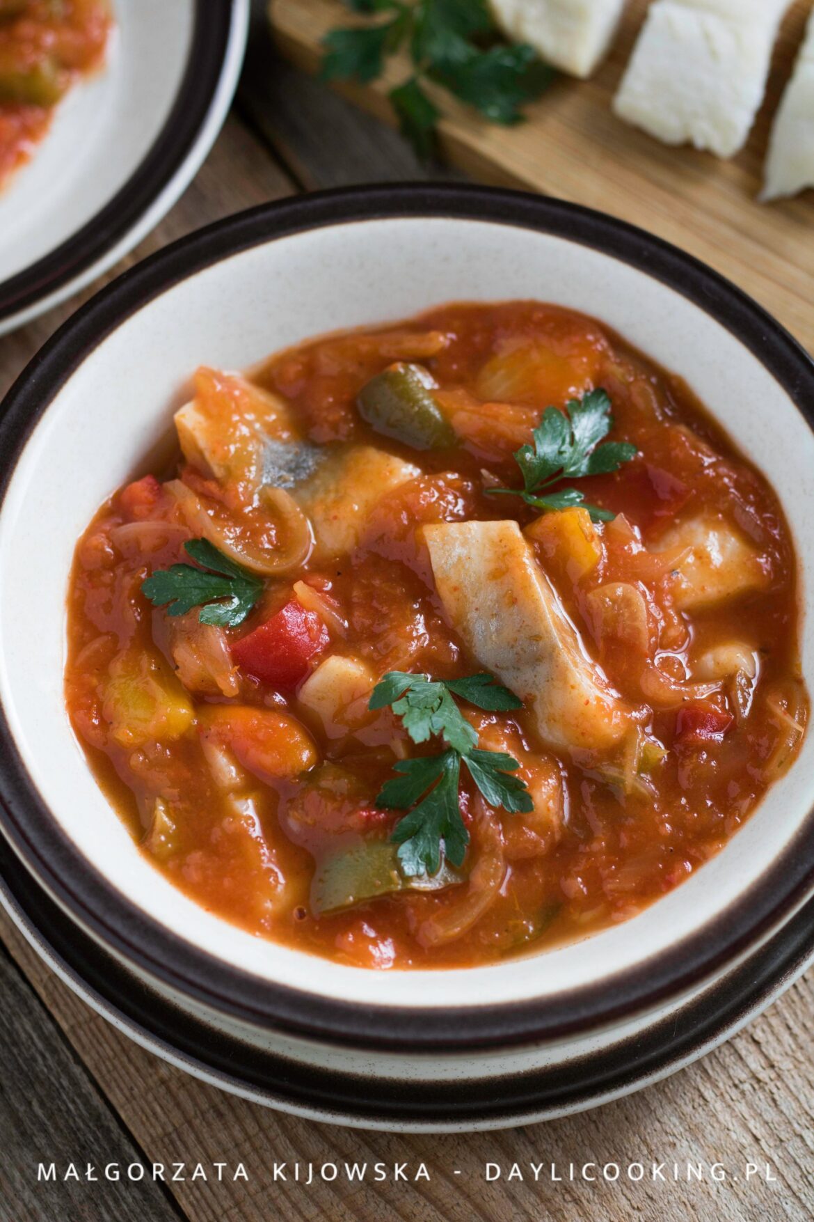 Sposób przygotowania śledzi w sosie słodko kwaśnym z papryką i pomidorami
